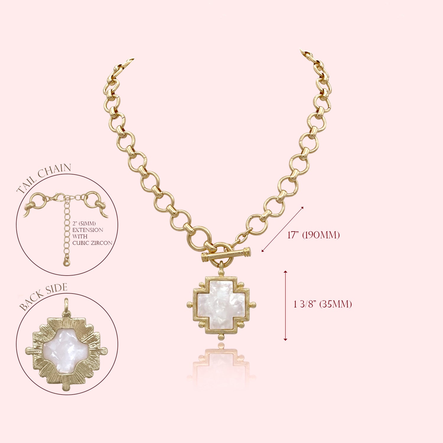 • The length option is the TOTAL chain length. All pieces will come with a 2" extension chain so you can FINE TUNE the fit.