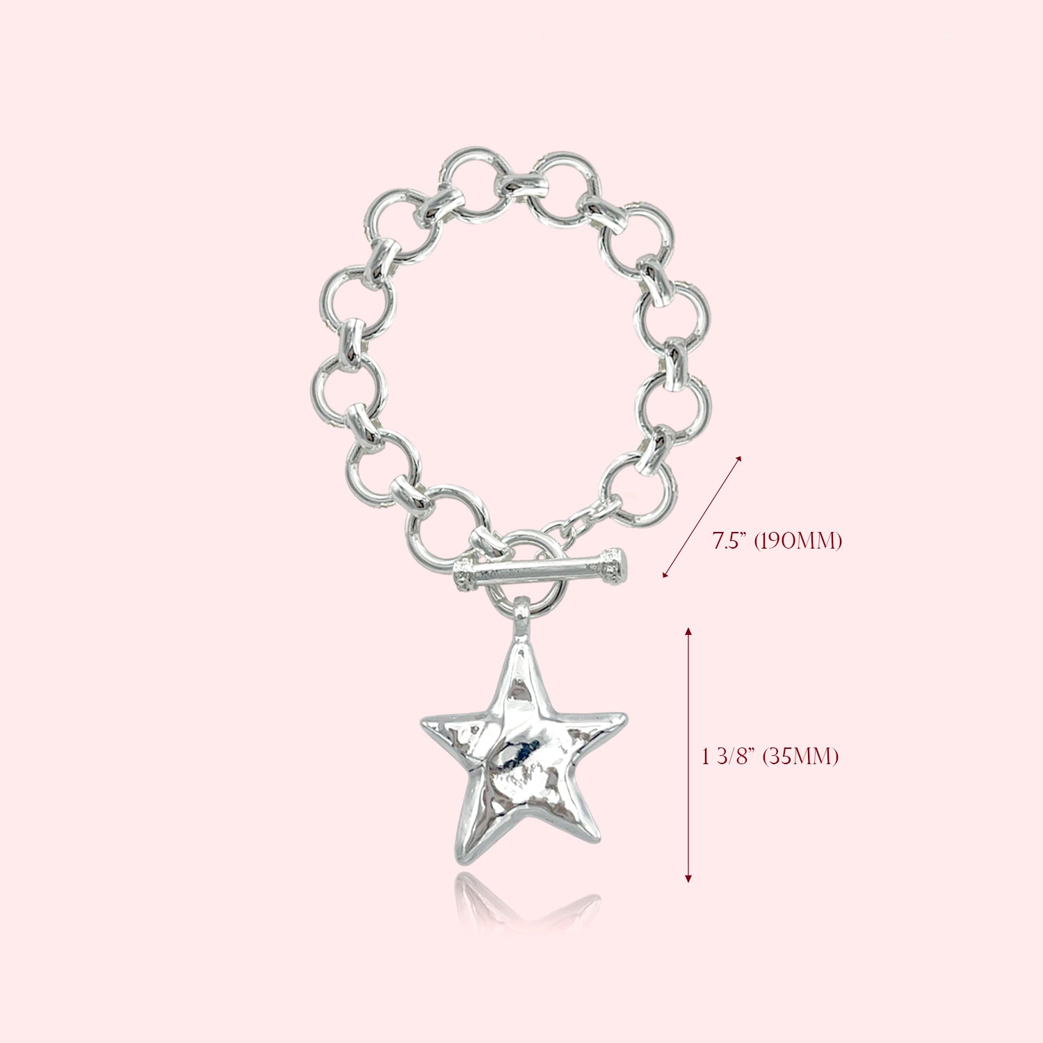 Hammered Bold Star Toggle Bracelet, Star Statement Pendant Toggle Bracelet, Handmade Toggle Hammered Texture Star Charm Bracelet