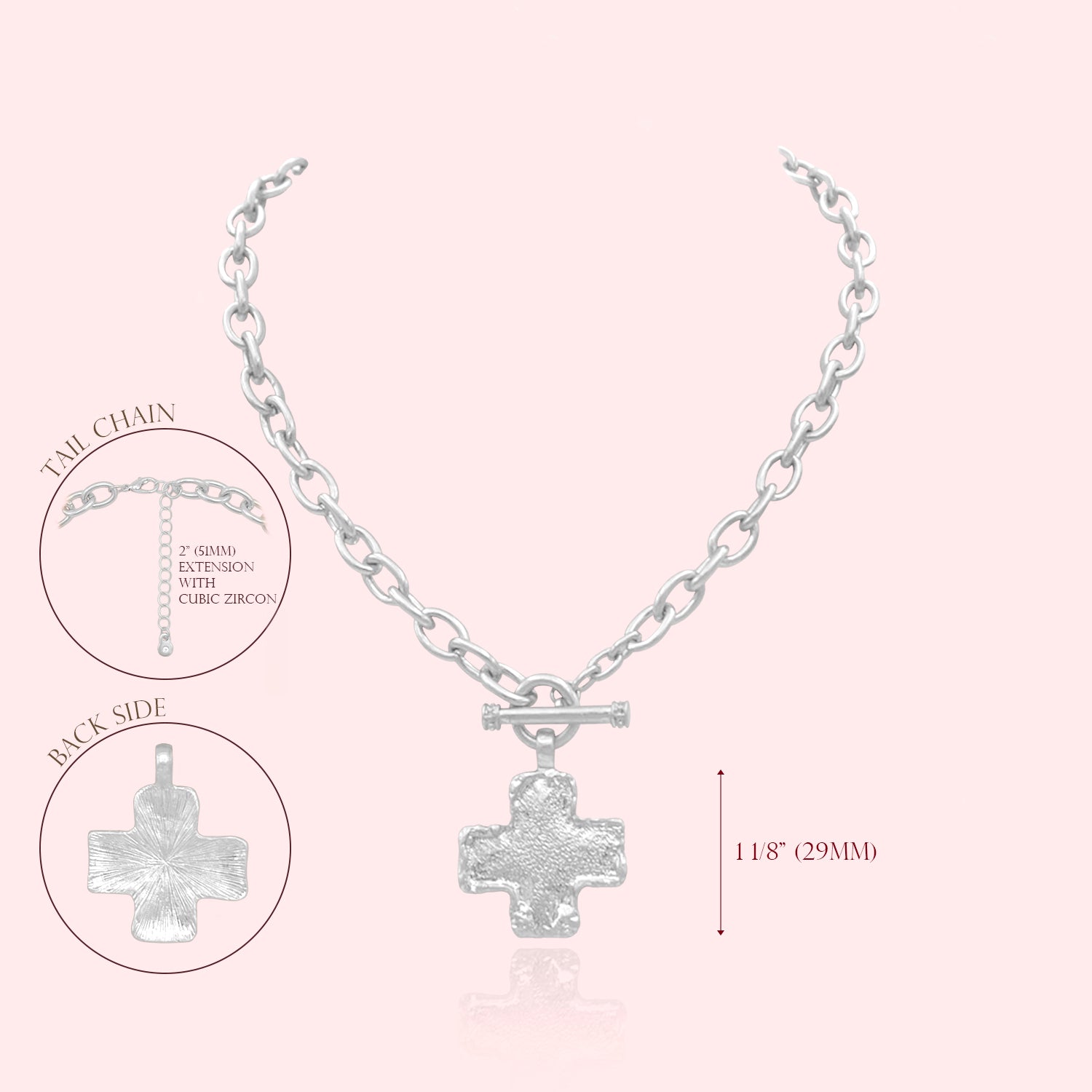 Maison Hammered Cross Necklace Toggle Chain Set, Textured Vintage Gold Statement Cross Pendant Necklace, Cross Pendant Toggle Necklace