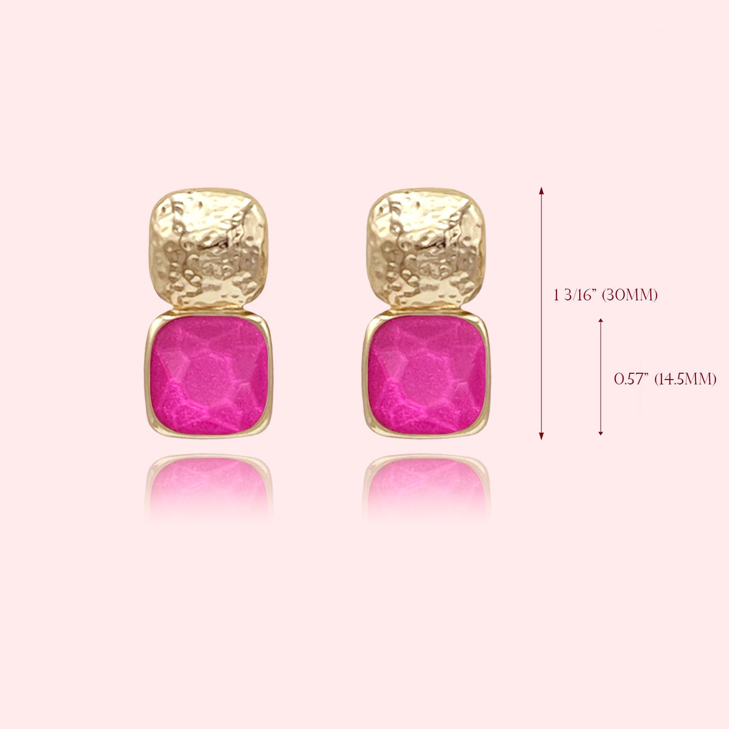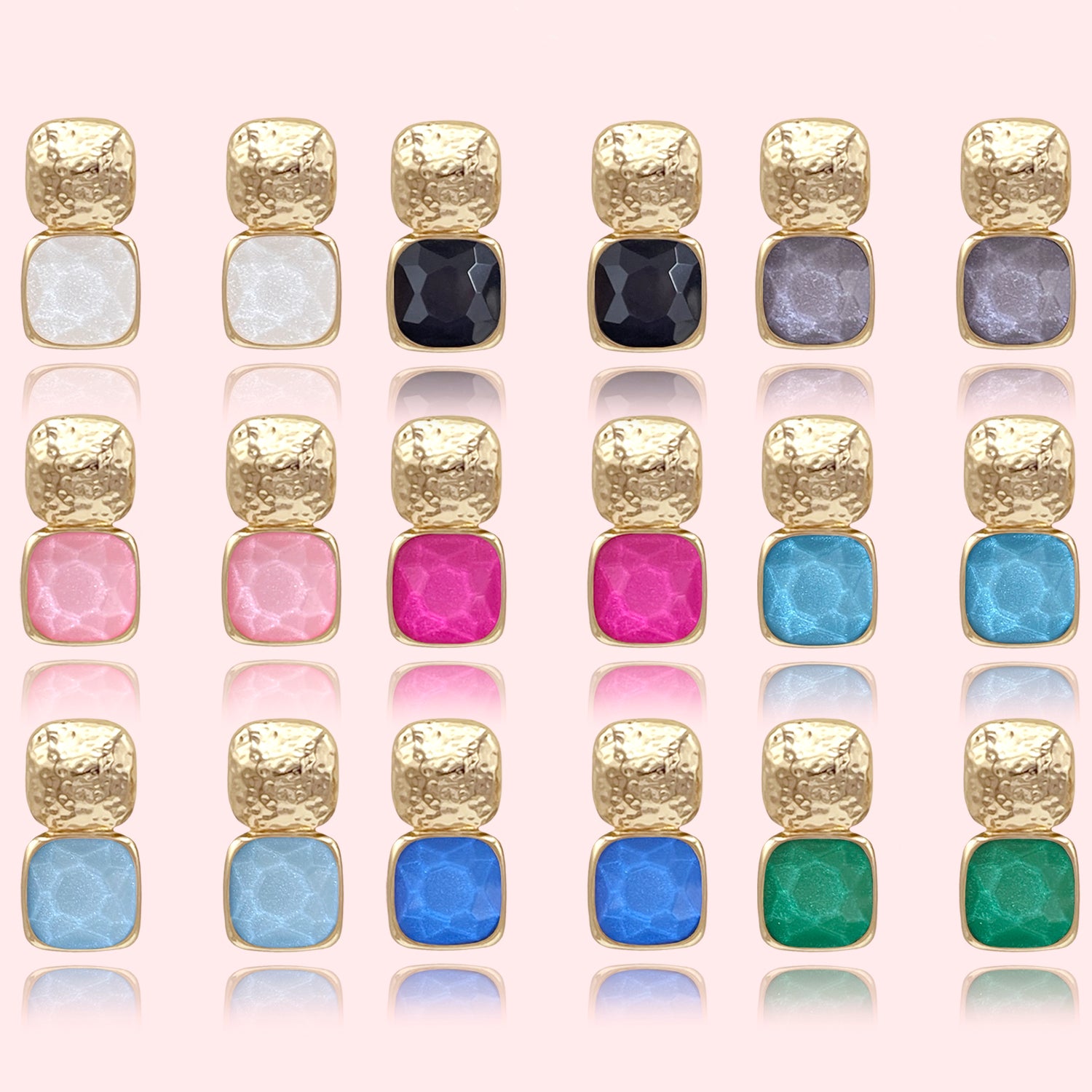 Statement Faceted Stone Stud Earrings, Bold Faceted Cushion Cut Stone Post Earrings, Color Block Faceted Cushion Cut Pendant Necklace